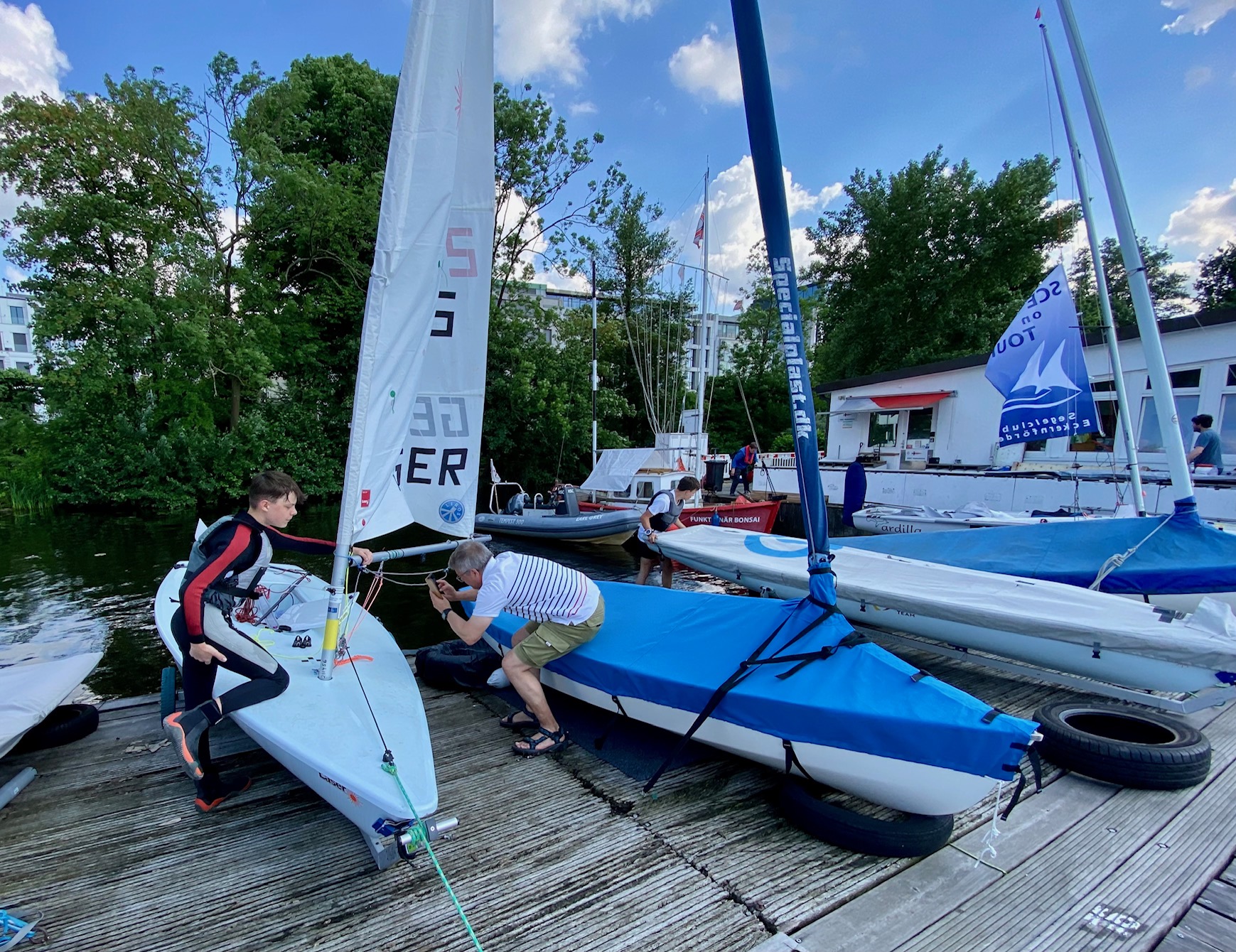 Ein ganz neues und unvergessliches Segelerlebnis hatte unser Trio (Max & Nico Heise und Max Schwarting) beim 61. Hamburger Jugendsegeltreffen. Diese Regatta war auch gleichzeitig die Landesjugendmeisterschaft Hamburg. Wir gingen an dem langen Fronleichnamwochende 1./2.06.2024 beim Hamburger Segel Club (HSC) auf der Außenalster in der Klasse ILCA 6 mitten in der Stadt an den Start. Es war insgesamt eine tolle Veranstaltung, bei der wir auch viele bekannte Gesichter aus unseren vorherigen Bootsklassen wiedertreffen konnten.