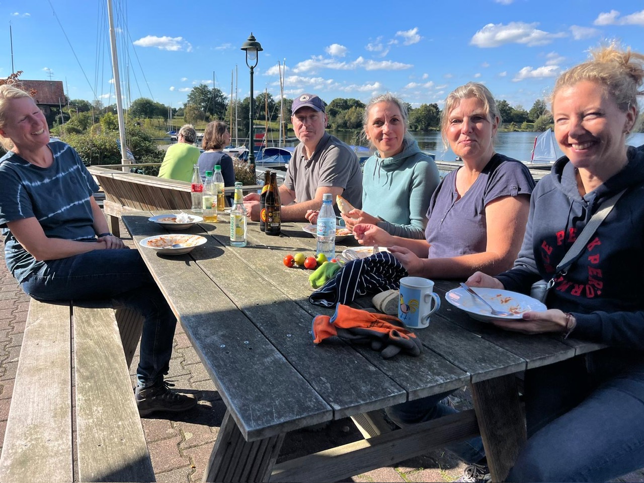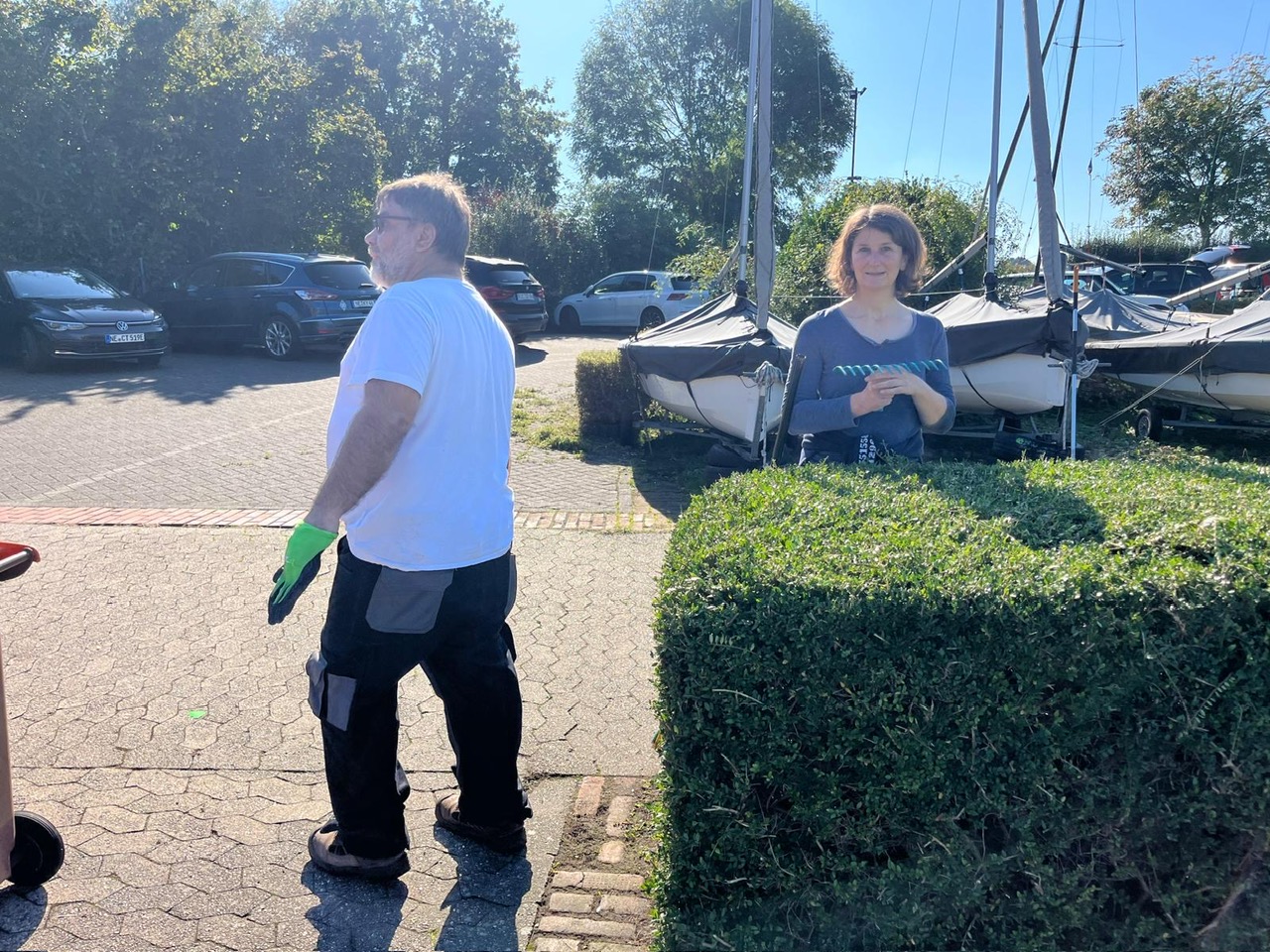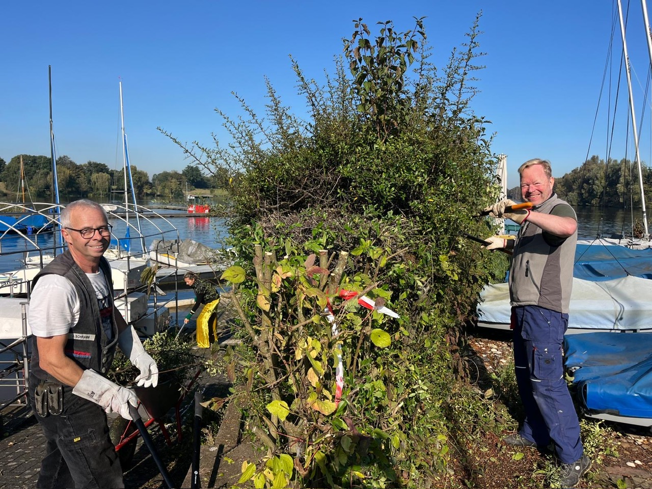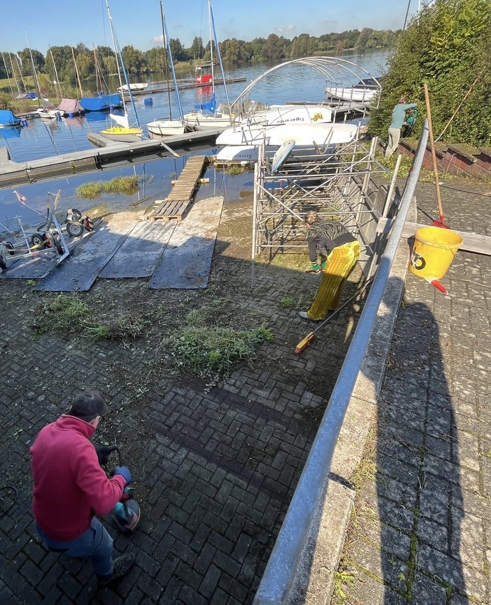 Sebastian: „Ich denke zum einen lockt die Kochkunst von Bärbel immer. Sie hat uns wieder mit einer köstlichen Chili Con Carne verwöhnt, Danke wieder einmal Bärbel! So konnten die erschöpften Kräfte aller Helfenden gestärkt werden und wir haben nach der gemeinsamen Pause um 14 Uhr mit voller Kraft weitergearbeitet. Zum anderen war es sicherlich auch hilfreich, dass der Aufruf zur Unterstützung in unseren verschiedenen WhatsApp Verteilern kommuniziert wurde. Daraufhin haben sich auch viele neue Clubmitglieder gemeldet und sich super eingebracht und wir haben uns gleichzeitig alle untereinander kennengelernt! Auch dafür besten Dank! Die Gemeinsamkeit ist bei solchen Aktionen wichtig. Ich würde gerne an dieses positive Momentum anknüpfen und einen eigenen Whatsapp-Verteiler einrichten für die, die tendenziell zur Unterstützung bereit sind. Man kann damit ja auch sehr gut seine Arbeitsstunden leisten.“