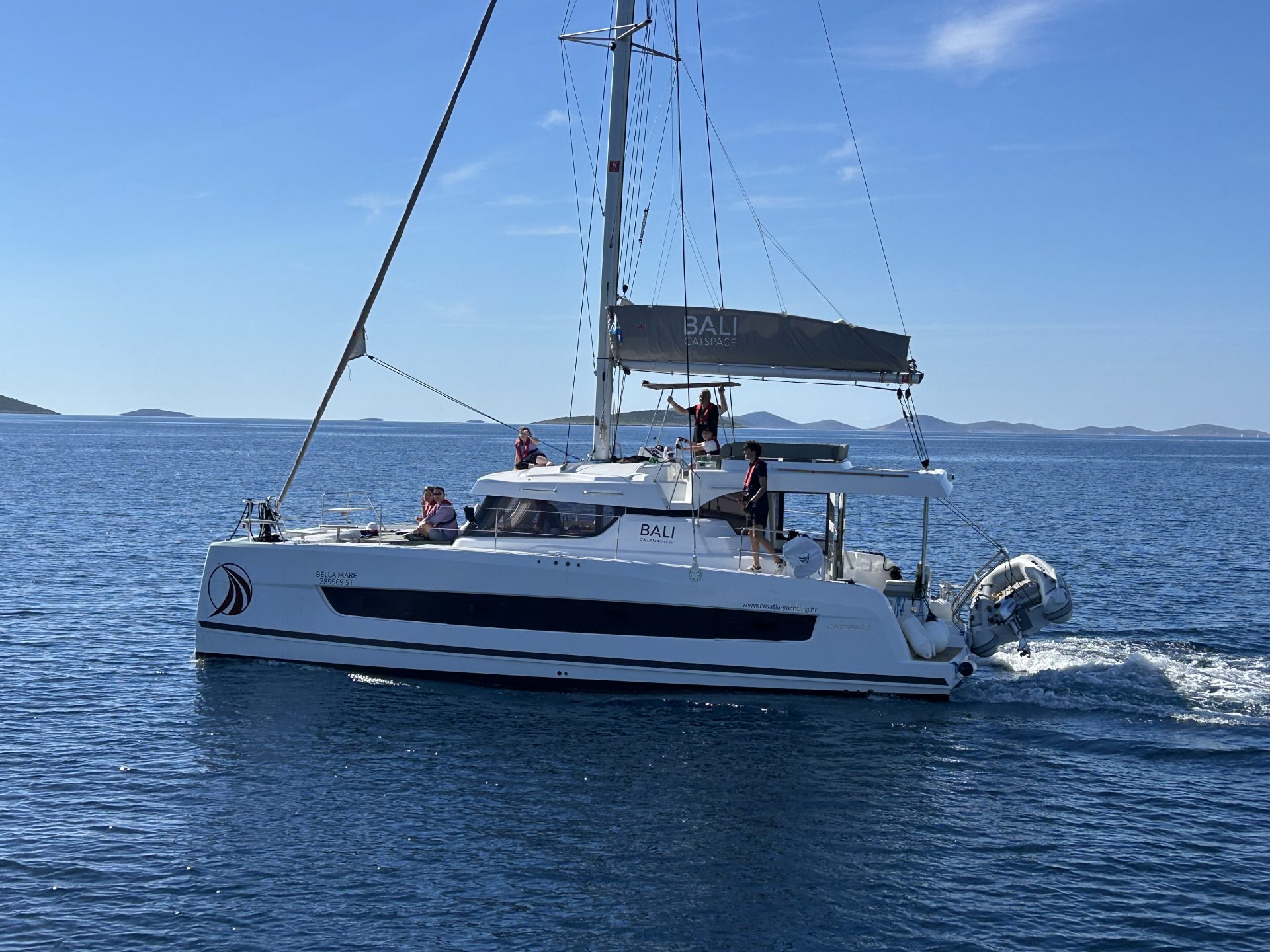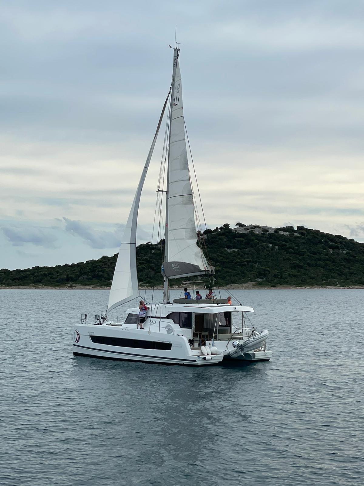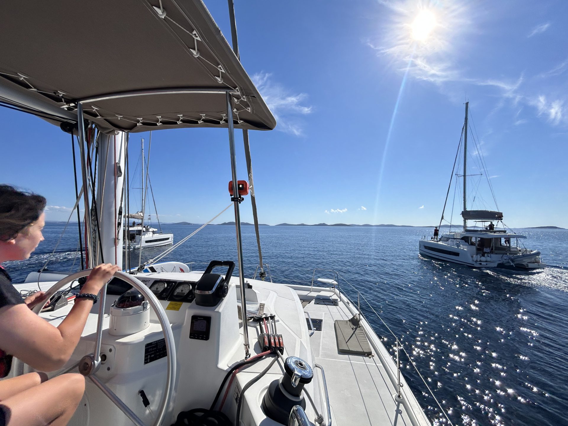 Allesamt hatten den Segelkatamaran Bali 4.1 mit vier Kojen für 3 und 2 Personen gechartert, dazu gab es ein riesiges Platzangebot im Salon und auf dem Achterschiff. Der Salon ließ sich über ein Fenstertor schließen, wenn es kühler würde oder die Crew an Land ging. Dazu gab es auf dem Vorschiff und auf dem Oberdeck viele Liegeflächen mit tollem Blick übers Meer. Purer Luxus!