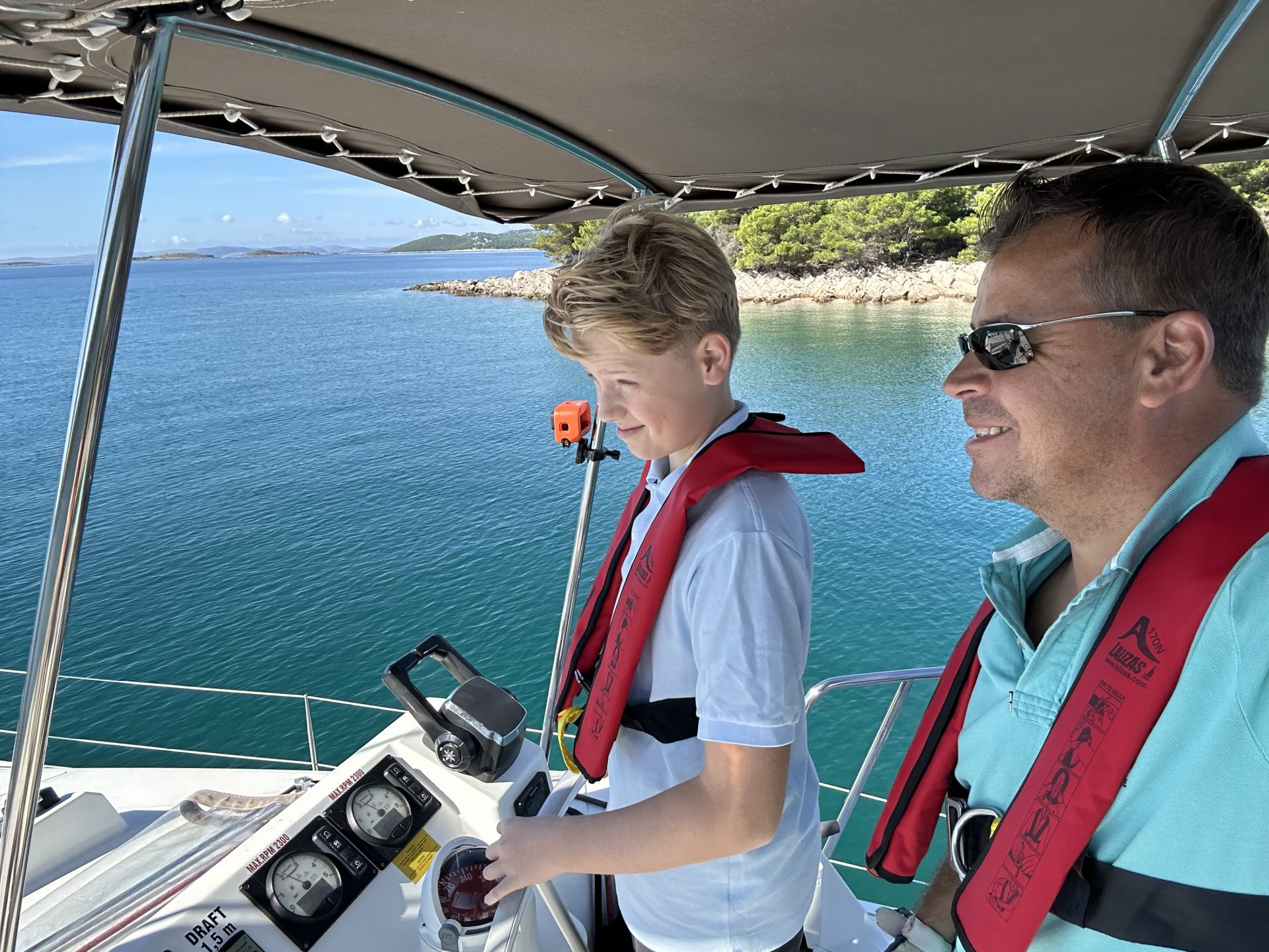 Die Dingis waren sowieso DAS Utensil für die Jugend an diesem Nachmittag. Zunächst musste repariert werden: einmal der Anlasser und einmal der Vergaser (ja, es gibt immer viel zu tun auf so einem Törn). Dann fuhren die motorversierten Jugendlichen uns Erwachsene von Boot zu Boot. Dieser perfekte Shuttle-Service hat zwar ab und zu Umwege genommen, aber der Spaß sollte ihnen gegönnt sein.