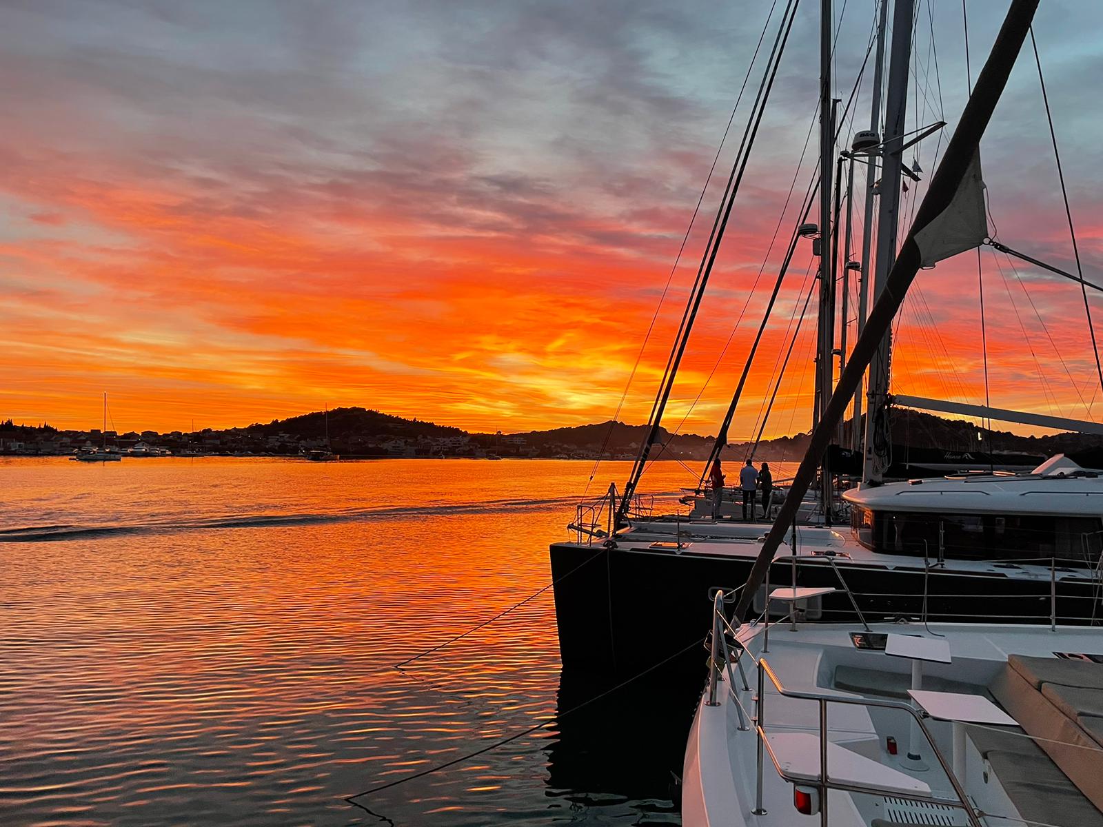 Wir stutzen etwas als wir unseren Biograder Hafen erreichten: Wegen der „Boot Show Biograd“ Ende Oktober, der größten Bootsmesse in der Adria, war der Hafen komplett umgebaut worden. Stege wurden versetzt, Schwimmterrassen ins Wasser gelassen. Es war schon abenteuerlich, den richtigen Steg zu finden. Doch mit genug Ruhe und der Unterstützung der Mannschaften am Steg hat alles problemlos geklappt.