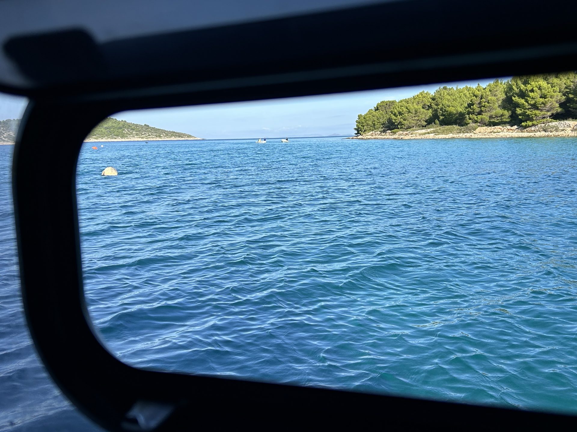 Mit Peter als Vorhut wollten wir vier Boote eigentlich an ein Bojenfeld der Insel Zlarin festmachen. Doch man stellte fest, dass das Bojenfeld bereits abgebaut war und sich im Hafen eine Baustelle befand. Also haben wir uns entschieden, zurück in unsere altbekannte und -beliebte Bucht zu fahren.