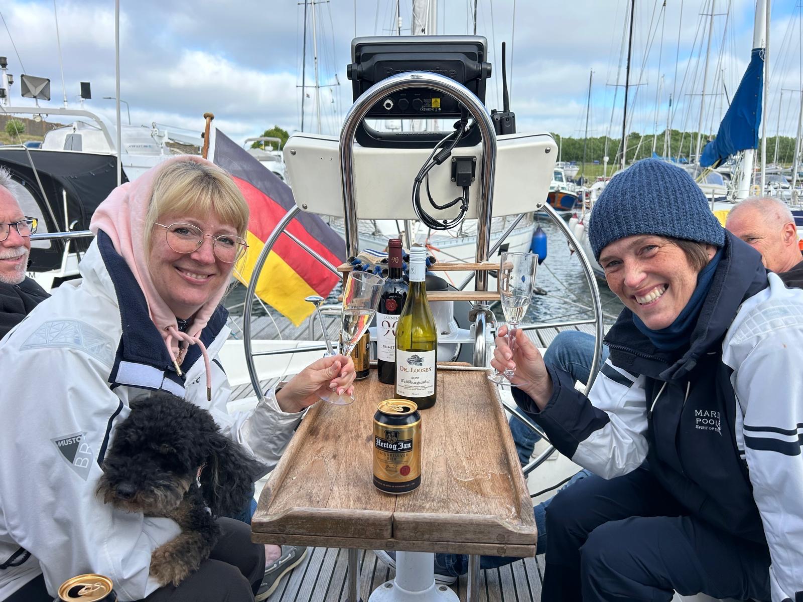 Und so gab es neben geselligen und mit Humor gespickten Phasen auch hochkonzentrierte Segellektionen. Ein Beispiel: Wurftraining von Leinen bei viel Wind. Gar nicht so einfach die Leine gezielt über einen Beschlag an Land oder einen Poller zu werfen. Nach dem Motto „Üben, üben, üben! “ gelang es Anna, Kerstin und mir am Ende doch ganz gut.