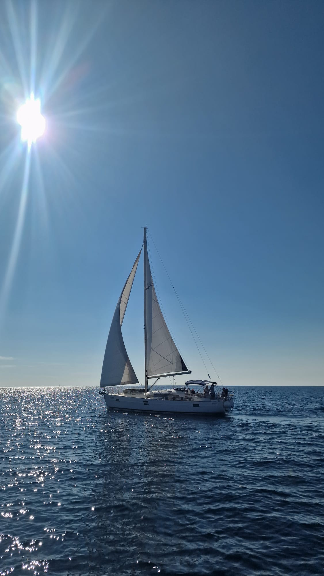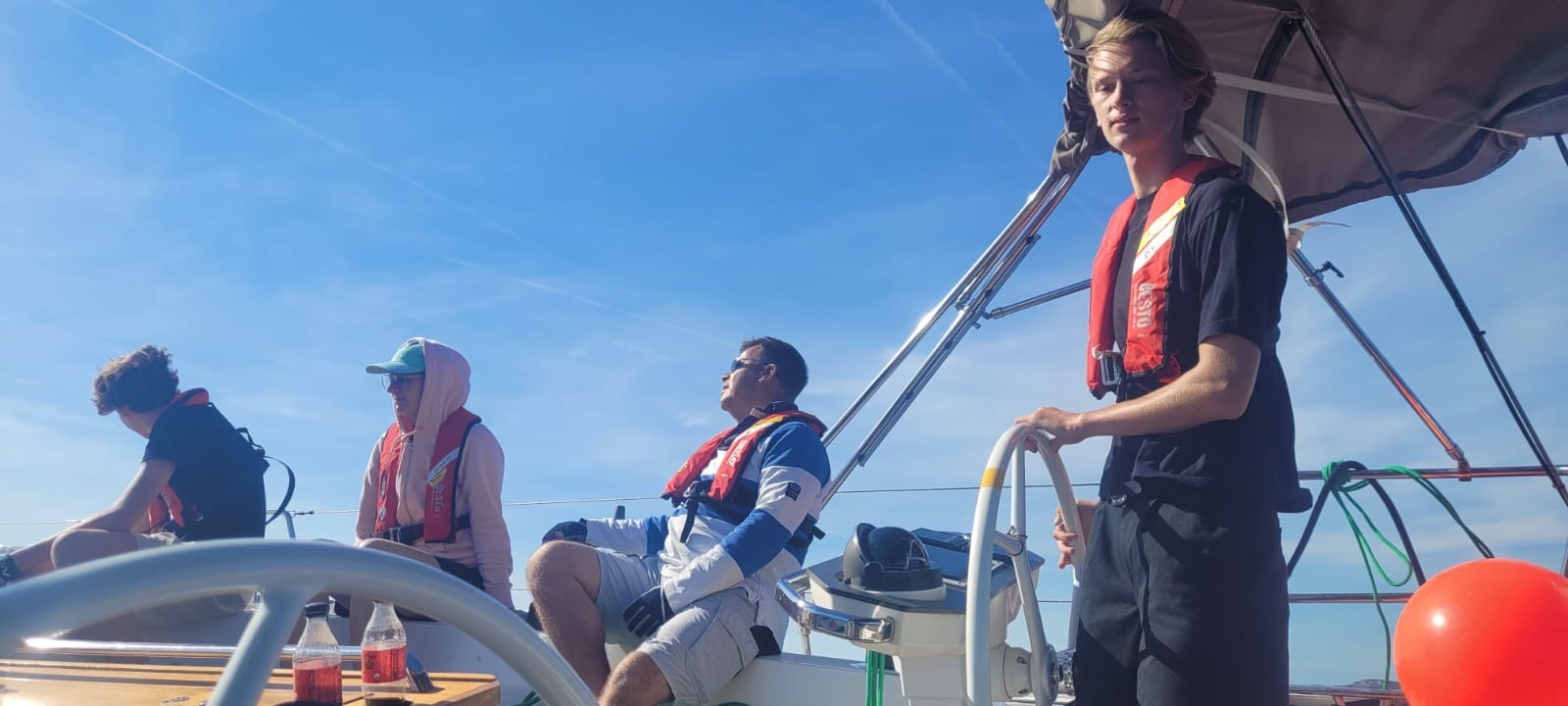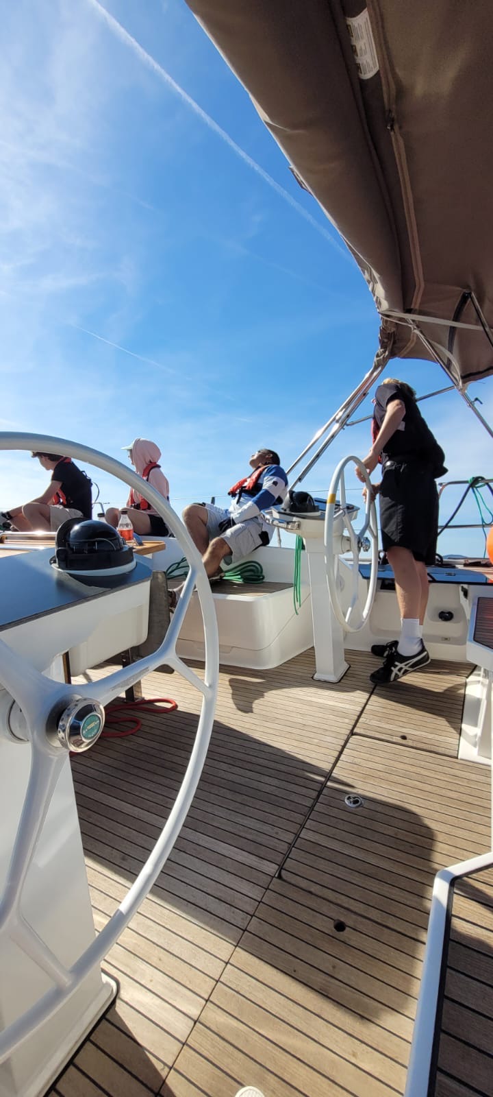 Was unsere Jugendlichen an Bord begeistert hat, war zum Beispiel das Gennakerziehen. Unser Skipper Stefan Gerstner (Fahrtenwart beim SCCR) hat vorab alles super erklärt und dann die Jugendlichen machen lassen. War der Gennaker gesetzt, ging ein Ruck durch das Schiff und wir rauschen mit über 8 Knoten durchs schöne Blau. Ein Erlebnis!