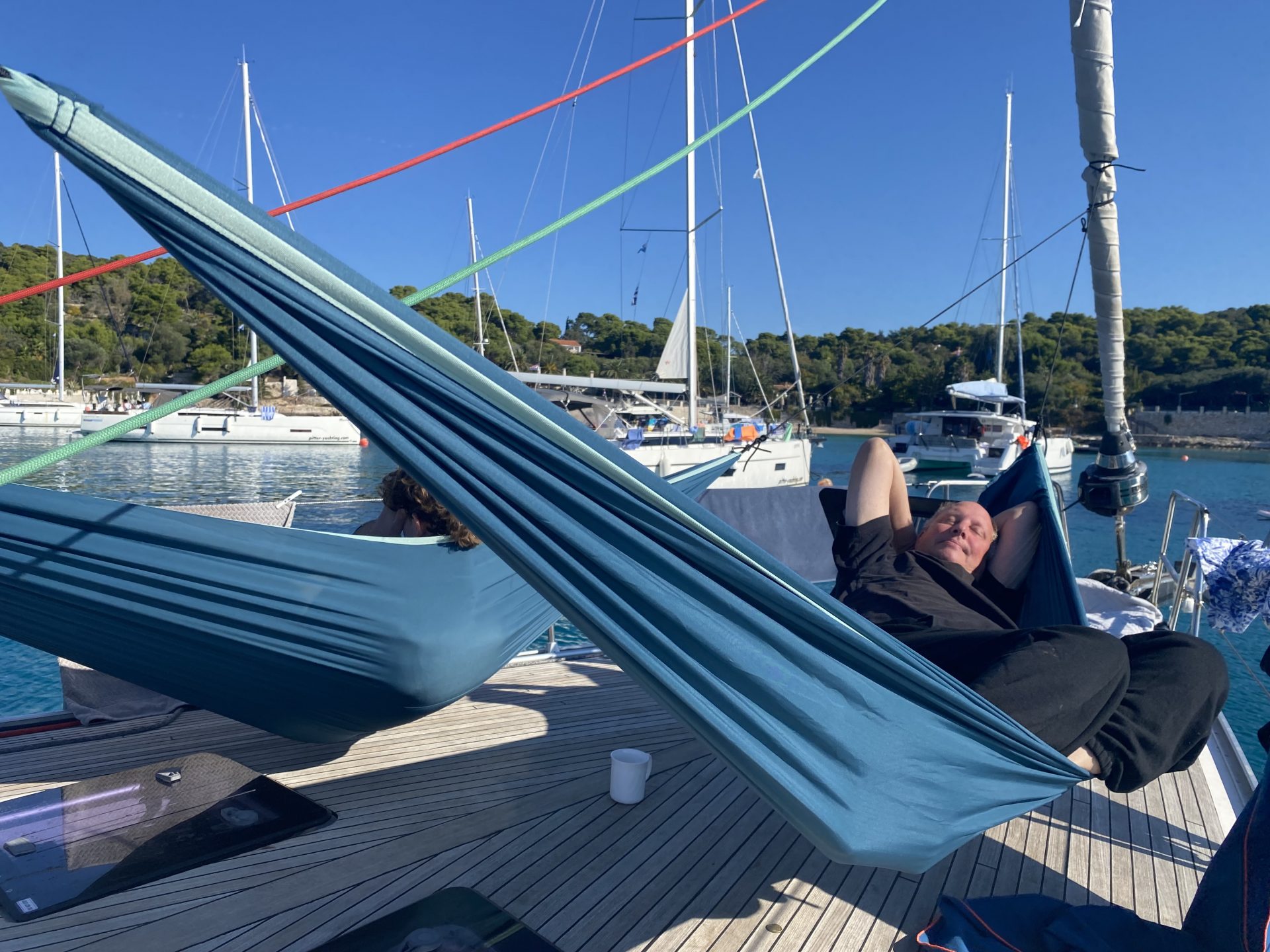 ! Tine: Unsere neunköpfige Crew war mal wieder super 😊 (4 Jugendliche & 5 Erwachsene). Sowohl segeltechnisch, wie auch beim Leben an Bord. Unsere „El Karinjo“ (Bavaria Cruiser 56) war ja mit 16,75m ein großes Boot und für die meisten eine echt neue Erfahrung. Von Tag zu Tag wurden die Manöver flüssiger und der letzte Anleger in Trogir (dem Start und Zielhafen) war fast schon lässig elegant.