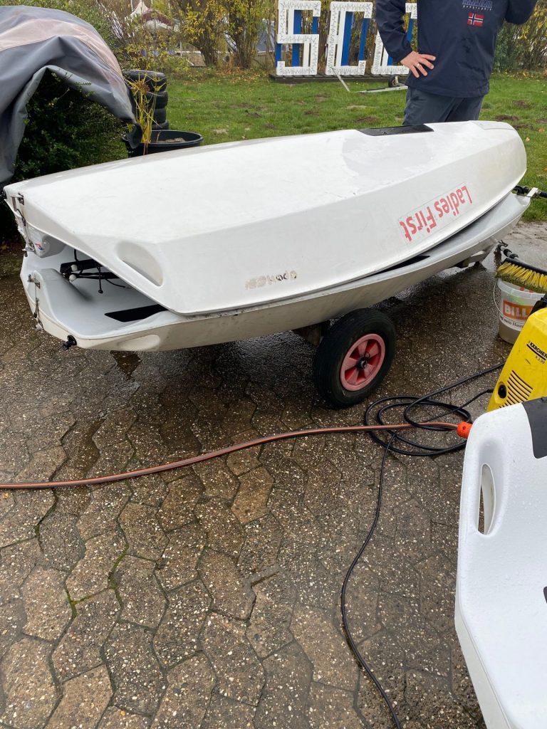 Die wohl beliebteste Station war der Kärcher und das durch alle Altersklassen. Da Wassersport bekanntlich nasser Sport ist, kamen alle mit den Begleiterscheinungen zurecht. Apropos: Das Wetter war morgens noch echt ungemütlich und nass, hatte dann beim Anblick von so viel Fleiß aber ein Einsehen. Muskeltraining für stramme Waden gab es außerdem gratis beim Slipwagen-Transport der Boote zum Schuppen.