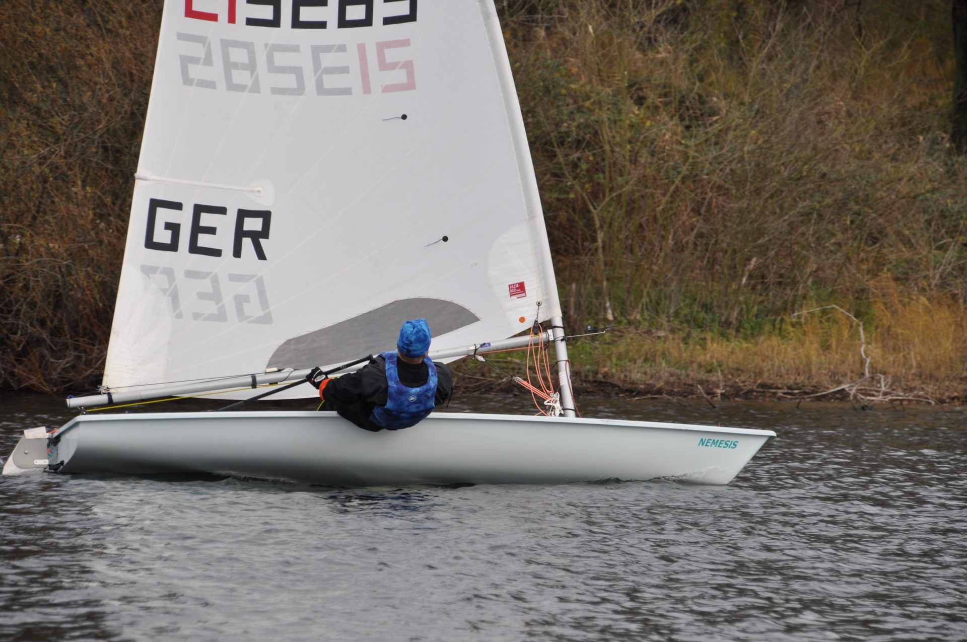 Aus ganz Deutschland waren Segler:innen am ersten Adventswochenende 29./30.11. zur Nikolaus-Einhandregatta der Wassersportgemeinschaft Rumeln-Kaldenhausen (WRK) angereist. Traditionell findet dort eine der letzten Ranglistenregatten auf dem Töppersee statt. Das Revier in unserer Nachbarschaft zeichnet sich wie der Elfrather See durch seine überschaubare Größe und Windlöcher aus, die die Segler gerne herausfordern.