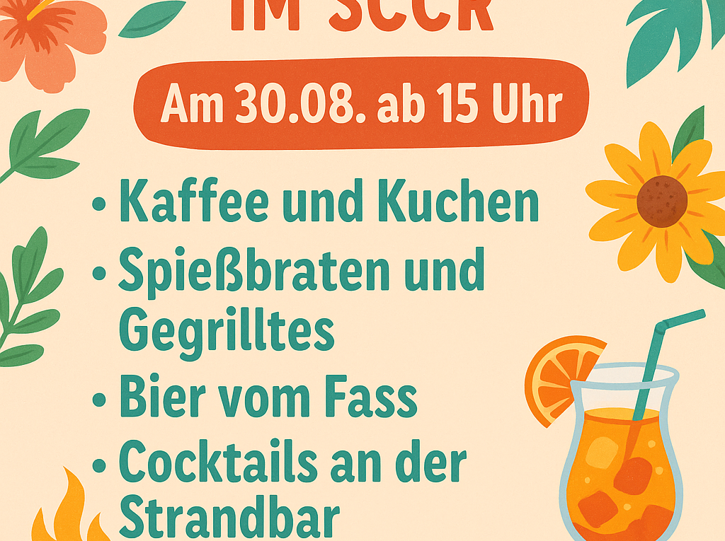 SCCR-Sommerfest Veröffentlicht am 30. August 202528. Juli 2025 von Sabine Heise Karte nicht verfügbar Datum/Zeit Date(s) - 30.08.202515:00 - 23:59 Veranstaltungsort Hütte SCCR e.V. Kategorien